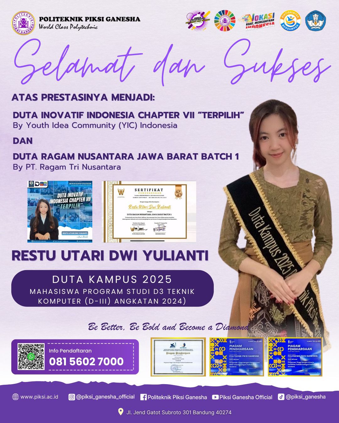 Fikri Fauzan, Salsabila awalia dan Rahul Rahman, mahasiswa semester 6 jurusan perbankan Syariah, berhasil memenangkan Lomba Duta Genre Kabupaten Purwakarta dengan menunjukkan kemampuan dan pengetahuan tentang genre yang baik, serta bakat dan kepribadian yang menonjol.
